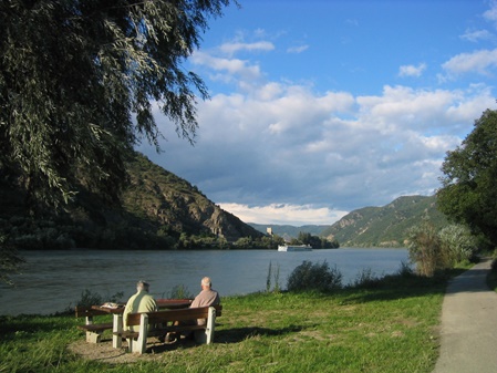 Die nächste Etappe bot längere Aufenthalte im urgeschichtlichen Freilichtmuseum bei Mitterkirchen und auf Burg Clam, bevor wir Grein erreichten. Nächste Tagesetappe: Über Pöchlarn (Maler Kokoschka) nach Melk und Besuch des Benediktinerstifts, einem Höhepunkt unserer Tour. Die Räder konnten dort sicher in Schließfächern verwahrt werden. Die anschließende Etappe führte uns von Spitz aus in die Wachau, zunächst nach Dürnstein mit Aufstieg zur Burgruine und herrlicher Aussicht in die Weinberge der Wachau, was uns zur nächsten Weinprobe am Wegesrand animierte, bevor wir zur Stadt von "Kunst und Genuss" Krems gelangten. Während der letzten Touretappe machten wir Halt in Tulln am Denkmal für das Nibelungenlied, in Greifenstein (Burg) und gelangten zügig über Klosterneuburg nach Wien.
